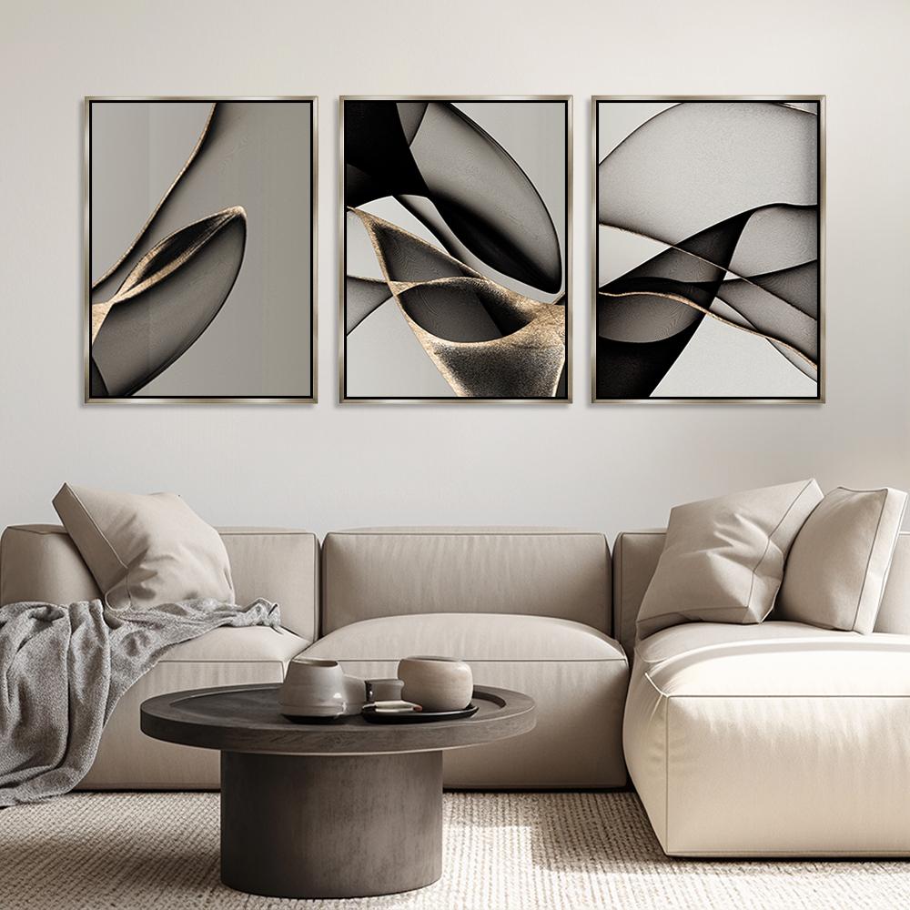 طقم لوحات ثلاثية - بتصميم تجريدي عصري